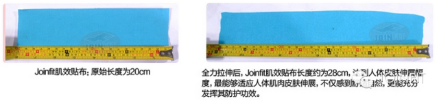 肌内效贴布(肌贴),是一种薄的带有弹性可延展的棉质片状贴布。当被拉伸时可拉长到原长度的130%----140%,所以相较于普通的医用贴布(白贴),在运动时肌贴可根据关节活动范围具有更好的贴合性,不太会出现像白贴那样经常经汗水后掉落的情况。