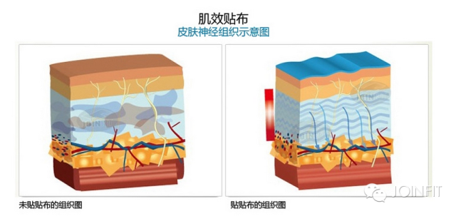 用过肌贴的朋友都知道,肌贴有一定的延展性,贴在身体上之后会出现像瓦楞纸那样的波纹。这一现象正是由肌贴的原理所体现的。肌贴的原理就是利用一个外力将筋膜层拉开,增加之间的距离,减少软组织活动中和筋膜的摩擦,增加血液血环和淋巴液循环,从而减轻由过度劳损(over-use)而引起的疼痛。另外也有人表示肌贴还有增加关节活动度,增加肌力的功能。