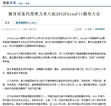 健身设备代理奥力来入驻2012ChinaFit健身大会