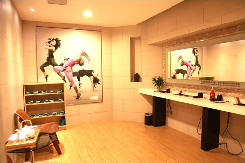 高温热瑜伽房采用环保热水循环系统,与常规的地热设备相比更能增加室内湿度,使室内不干燥的同时达到理想温度。粉红色的环保墙漆更好的配合高温瑜珈课的氛围